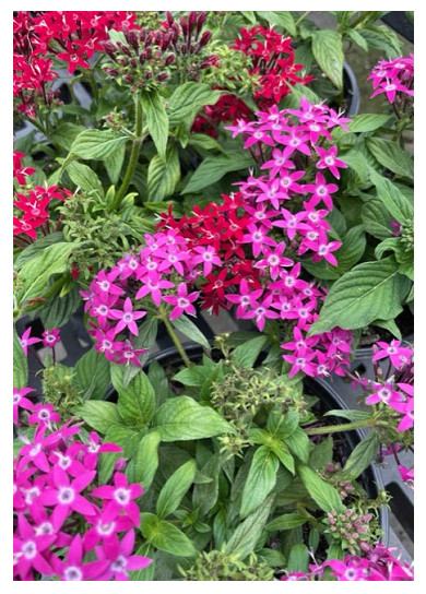 -Pentas thrive in full sun and well drained soil. They come in a variety of colors such as white, red, purple and various shades of pink. Most Pentas grow about 15" wide and 2-3ft tall so be sure to leave ample room when growing in garden beds. Pinch back for a bushier growth.